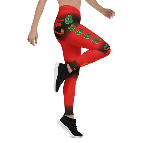 Color Black & Red Queen of NC style front logo 2.... leggings